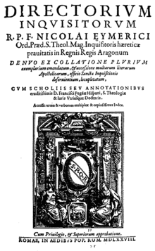 ![]() Титульный лист венецианского издания Directorium inquisitorum 1607 года | |
