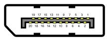 DisplayPort — стандарт сигнального интерфейса для цифровых мониторов. Принят VESA (Video Electronics Standard Association) в мае 2006, версия 1.4 принята 1 марта 2016[1]. DisplayPort предполагается к использованию в качестве наиболее современного интерфейса соединения аудио- и видеоаппаратуры, в первую очередь для соединения компьютера с дисплеем или компьютера и систем домашнего кинотеатра. Имеет свой логотип и торговую марку.