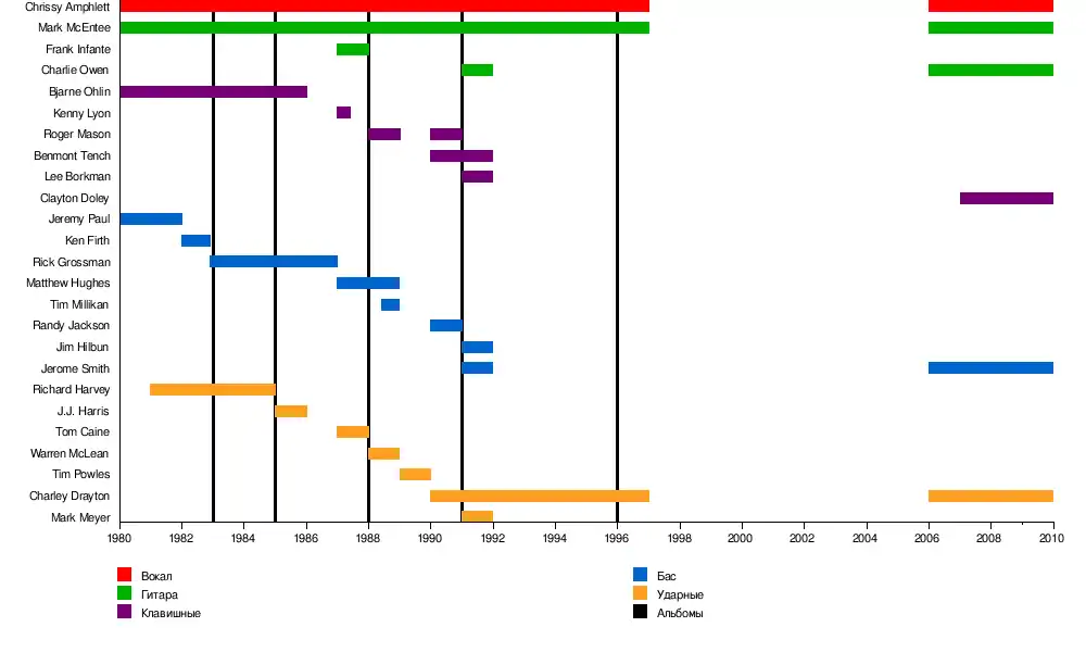 - Кристина Ампфлетт (1980—1997, 2006—2009), вокал