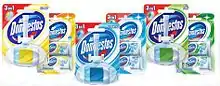 - Domestos Germ Blaster — посуда для клеток с ободным блоком, рекламируемая как «единственный ободной блок, который убивает микробы по мере освежения».