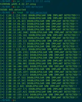 DoublePulsar — бэкдор, разработанный группировкой Equation Group (предположительно являющейся подразделением АНБ) и опубликованный хакерской группой The Shadow Brokers в начале 2017 года. Компания Microsoft исправила недостатки в мартовском обновлении, но последние отчёты свидетельствуют о том, что многие владельцы персональных компьютеров не смогли применить исправления или используют неподдерживаемую версию Windows. Этот инструмент смог заразить более 500 000 компьютеров под управлением ОС семейства Microsoft Windows всего за несколько недель. Вредоносная программа доставляется через TCP-порт 445 с помощью эксплойта EternalBlue, использующего уязвимость в реализации протокола SMB (Server Message Block).[1] После публикации сведений об уязвимости, группа хакеров 12 мая 2017 г. выпустила в сеть вирусную программу WannaCry, представляющую собой сетевого червя-вымогателя.