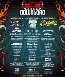 Фестиваль прошёл 10 по 12 июня 2011 года. Список групп, которые официально прииняли участие в Download 2011: