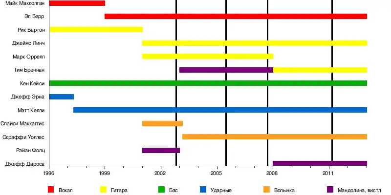 ![]() Dropkick Murphys на фестивале Блюзфест в Оттаве в 2011 году. | |