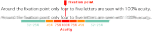 Как компьютерные эксперименты, так и натурные с человеком доказывают, что при чтении по целым словам отсутствует последовательный разбор букв. Все буквы, попавшие в зону жёлтого пятна, дешифруются параллельно. Как правило, у взрослого это 6—7 букв, а у 5—7-летнего ребёнка 3—4 буквы. Ещё около 7 букв V-сеть распознаёт очень приблизительно с большим количеством ошибок за счёт просмотра размытого изображения этих букв в парафовеальной области вокруг жёлтого пятна и передаёт эти неточные данные в нейросеть L1, которая, если сможет распознать за нечётким изображением букв высокочастотное слово, отдаст команду на пропуск его чтения. Общие размытые очертания текста периферическим зрением передаются в нейросеть M1 для общего планирования чтения страницы.[11]
