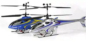 На раме вертолёта крепятся два коллекторных электродвигателя 180-й серии (каждый для своего ротора), две главных шестерни, внутренний и внешний валы приводящие в движение роторы и две сервомашинки (управление тарелкой автомата перекоса). Автомат перекоса позволяет управлять только циклическим шагом только нижнего ротора. Верхний ротор меняет только циклический шаг, но задаваемый не тарелкой автомата перекоса, а флайбаром (механическим стабилизатором-гироскопом). По причине такого управления циклическим шагом вертолёт очень стабилен, но максимальные углы по крену и тангажу вертолёта сравнительно невелики, что в совокупности с небольшой тяговооружённостью не позволяет выполнять сложный пилотаж. Такие характеристики отлично подходят для начального обучения управлению РУ-моделью вертолёта.