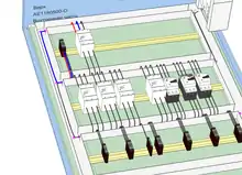 После установки изделий в шкафу пользователь может разместить короба (кабельные каналы), в которые будут укладываться провода и кабели. Модуль E3.Panel содержит в своем составе функциональность автоматической (или, по желанию, полуавтоматической) трассировки проводов в коробах на основании таблицы цепей, полученной из принципиальной схемы. (Модуль E3.Panel с активной функциональностью автотрассировки в комплектах поставки программы E3.series именуется модулем E3.Panel+) Одним из важных атрибутов коробов является заданная пользователем степень их заполнения в процентах. Модуль E3.Panel автоматически рассчитывает уровень заполнения коробов в каждый момент времени и запрещает прокладку проводов в тех коробах, для которых достигнут предельный уровень заполнения. (в качестве предельного принят 70%-й уровень заполнения коробов.) При этом функциональность автотрассировки рассчитывает минимальную длину проводов, несмотря на возможное присутствие циклических (шлейфовых) цепей. Система также рассчитывает физическую длину провода с учётом высотных отметок контактов изделий.