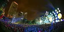Электронная танцевальная музыка часто играла на нелегальных андерграундных рейв-вечеринках. Они проводились в секретных местах, такие как: склады, заброшенные мосты, поля и другие открытые пространства. В 1990-х и 2000-х годах подземная рейв-культура 80-х и начала 1990-х годов начала перебираться на легальные концерты EDM и фестивали. Основные фестивали часто имеют большое количество сцен, представляющих различные жанры EDM. Организаторы фестивалей обращают много внимания на визуальные эффекты, в том числе сложные конструкции сцен со своими тематиками, системы освещения, лазерные шоу и пиротехника. Фестивали, часто проводимые на крупных площадках, отличаются от подземных рейвов их организованностью, а также мерами по обеспечению безопасности участников.