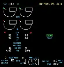 EICAS (англ. Engine Indication and Crew Alerting System, Система индикации параметров работы двигателя и предупреждения об отказах) — обеспечивает индикацию всех основных и вторичных параметров двигателей. Предупредительные сообщения извещают о системных отказах и некоторых эксплуатационных условиях.