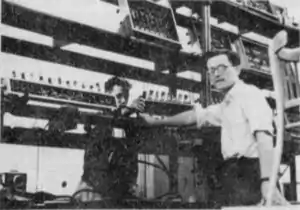 Запуск компьютера EMAL, справа — Ромуальд Марчиньский, за пультом управления — В. Стаховяк