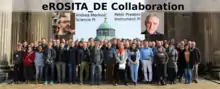 Рентгеновский телескоп eROSITA был разработан в Институте внеземной физики Общества Макса Планка в сотрудничестве с институтами в Бамберге, Гамбурге, Потсдаме и Тюбингене. Научный руководитель телескопа eROSITA доктор Петер Прёдель, а руководителем проекта является физик Андреа Мерлони.[17][18] Участниками проекта eROSITA являются немецкие и международные институты, которые сотрудничают с наземными телескопами для последующих наблюдений за миллионами источников, которые обнаруживает eROSITA.