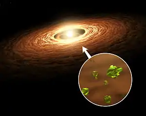 ![]() EX Волка и окружающий её диск с кристаллами силикатов в представлении художника. | |