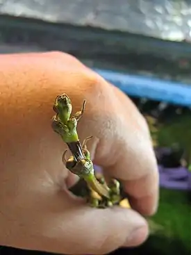 В аквариуме Echinodorus osiris размножается вегетативно, образуя цветочные стрелки, на которых появляются дочерние растения. Стрелку, на которой образовались дочерние растения, необходимо прижать к грунту для их укоренения. После того, как молодые растения укоренятся и образуют 4—5 крупных листьев, их можно отделять от стрелки. Образование нескольких цветочных стрелок сильно истощает растение и может привести к его гибели, поэтому следует удалять лишние стрелки. Эхинодорус также может образовывать дочерние растения на отростках корневища. От корневища молодые растения можно отделять после образования 4—5 листьев и 2—3 корешков. Этот способ размножения материнские кусты не истощает.