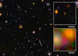 - Zitrin A., et al. Lyman-alpha Emission from a Luminous z=8.68 Galaxy: Implications for Galaxies as Tracers of Cosmic Reionization (англ.) // arXiv : journal. — 2015. — 9 July.