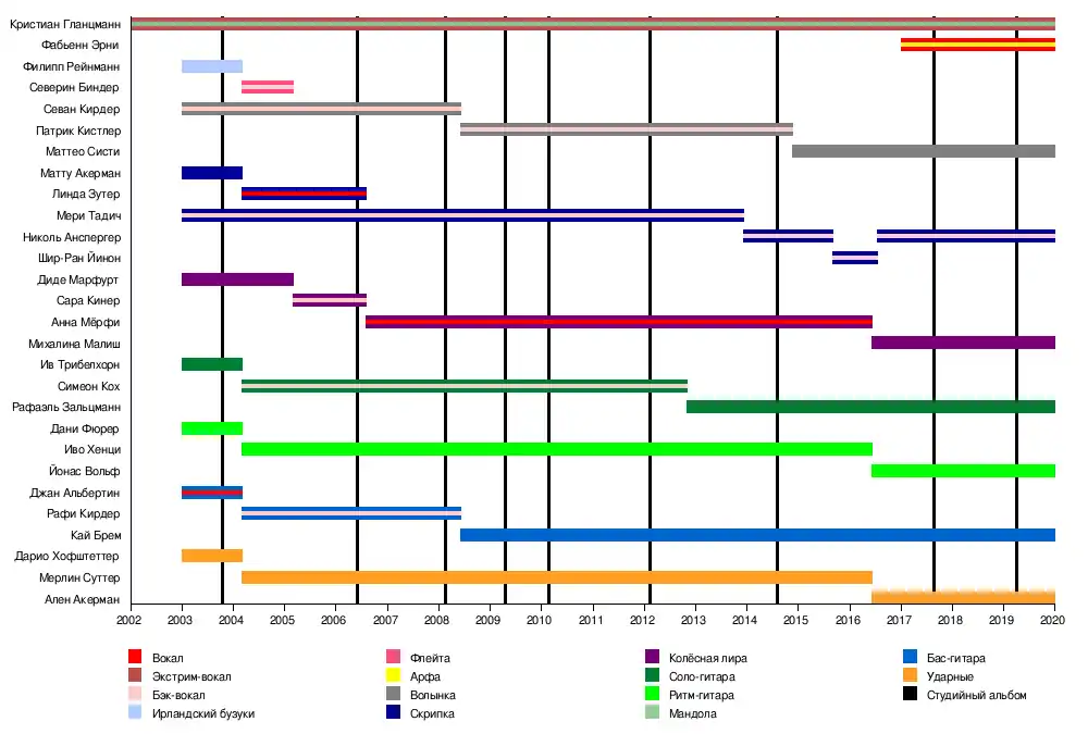 - Николь Анспергер — народная скрипка, бэк-вокал (2013-2015, с 2016 года)