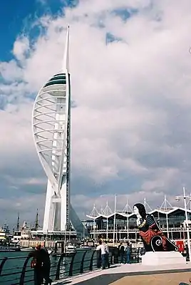 Emirates Spinnaker Tower — башня высотой в 170 метров над уровнем моря и в 2,5 раза выше колонны Нельсона. Самая высокая смотровая башня Великобритании с 2005 г. по н. в., самое высокое сооружение страны в общественном доступе (исключая Лондон); центр реконструкции порта Портсмута, которая была поддержана грантом Национальной Лотереи. Дизайн разработан местной фирмой HGP Architects, постройку вела компания Mowlem; сооружение отражает морскую историю Портсмута благодаря своей форме в виде паруса. После нескольких лет задержек и перерасхода средств башня была открыта; произошло это 18 октября 2005 года.