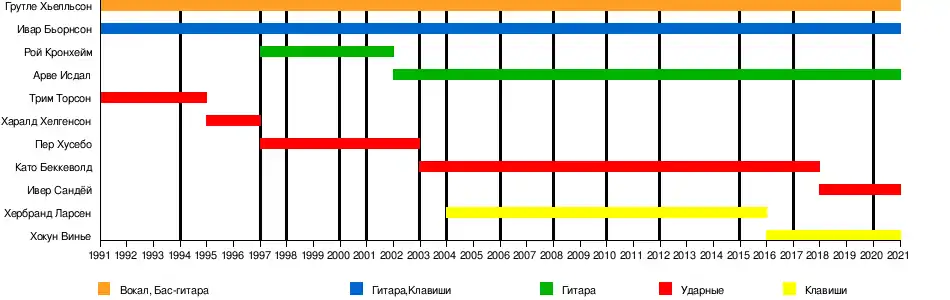 - Ивар Бьёрнсон (норв. Ivar Bjørnson) — гитара, клавишные, вокал (1991 — настоящее время)