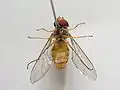 На личинках этой мухи паразитирует несколько видов из отряда перепончатокрылых: Diplazon laetatorius (Ichneumonidae), Melanips opacus (Figitidae) и Pachyneuron formosum (Pteromalidae).
