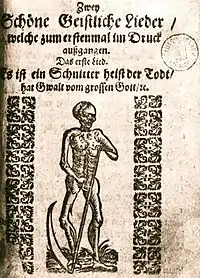 ![]() Иллюстрация к песне «Es ist ein Schnitter heist der Todt» из издания Й. Шультеса (ок. 1660) | |
