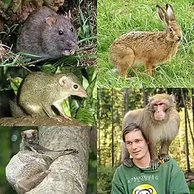 ![]() 1-й столбец: серая крыса (грызуны), обыкновенная тупайя (тупайи), малайский шерстокрыл (шерстокрылы); | ||||||||||