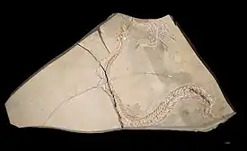 Размер — 50 сантиметров. На второй конечности не хватает некоторых костей стопы и большого пальца (характерно для современных наземных ящериц).