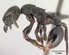 Мелкие муравьи (длина около 5 мм). Чёрного или тёмно-бурого цвета.