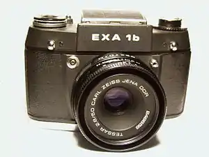 - Exa Ib — Резьбовое соединение M42×1. Штатный объектив Carl Zeiss Jena Tessar 50 мм f/2,8. Затвор в виде двух вращающихся цилиндров. Один из них был закреплён на зеркале.