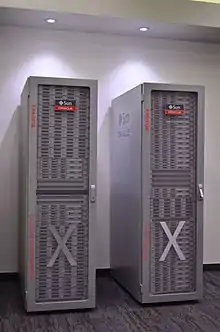 Аппаратная часть комплекса состоит из одноюнитовых серверов на базе двух процессоров Intel Xeon с двумя твердотельными накопителями в каждом для операционной системы и свопинга, общей для всех серверов системы хранения данных, коммутаторов InfiniBand и Ethernet[9]. В первых выпусках X2-2 устанавливались шестиядерные процессоры частотой 2,93 ГГц, позднее — шестиядерные процессоры частотой 3,07 ГГц, в комплексах X3-2 — восьмиядерные Sandy Bridge частотой 2,9 ГГц, а в комплексах X4-2 — двенадцатиядерные частотой 2,7 ГГц. В каждом узле X2-2 устанавливалось 96 Гбайт оперативной памяти, начиная с версии X3-2 устанавливается 256 Гбайт на узел.