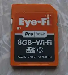 Eye-Fi — разновидность флеш-карт памяти SD со встроенными внутри карты аппаратными элементами поддержки технологии Wi-Fi.