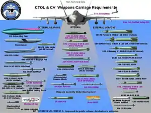По утверждению производителя, F-35 сможет запускать ракеты и корректируемые бомбы из внутренних отсеков на своих максимальных сверхзвуковых скоростях[31].