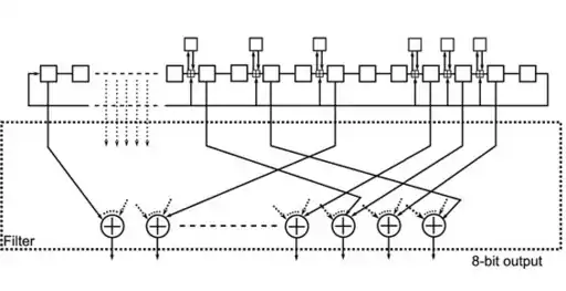 Фильтрующая линейная функция на выходе определяется маской () Один бит на выходе определяется следующим образом: