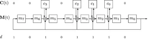 - C — l-разрядный регистр сдвига, l + 1 — число единиц в двоичной записи d, .
