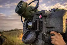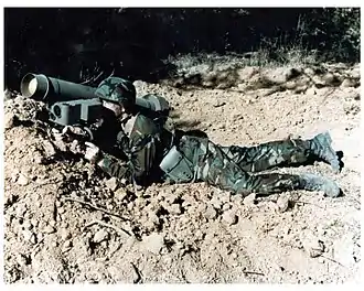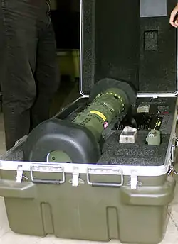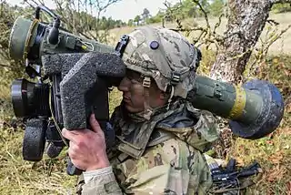 «Джавелин» (от англ. Javelin /ˈdʒævlɪn/, чит. «Джэ́влин»[5] — «метательное копьё, дротик»; общевойсковой индекс — FGM-148) — американский переносной противотанковый ракетный комплекс (ПТРК). Предназначен для поражения бронетехники и низколетящих малоскоростных целей (вертолётов, БПЛА, заходящих на посадку винтомоторных самолётов). Является первым серийным ПТРК третьего поколения.