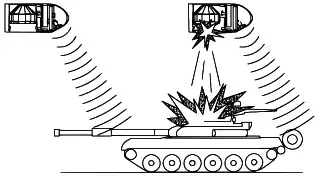 - противотанковой ракеты: над целью (с поворотом боевой части методом доворота в направлении центра масс цели)