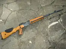 В ряде случаев телескопический прицел не может быть использован. Мушка и прицел обычно находятся в сложенном положении. Когда они используются, им придается вертикальное положение. Прицел имеет прямоугольную прорезь, а мушка выполнена в форме усечённой пирамиды. По обеим сторонам прорези прицела и на мушке нанесены три люминесцентные зелёные точки, которые при стрельбе в ночных условиях удерживаются на одной горизонтальной линии и наводятся на цель. Для использования механического прицела необходимо предварительно снять оптический прицел. Приклад имеет надставные «затылок» и «щеку». Надставки увеличивают длину приклада на 20 или 40 мм, высоту «щеки» — на 8 или 17 мм. Для увеличения длины приклада одна из надставок крепится на торцевой части приклада при помощи винта. Затем устанавливается подщёчная надставка, которая увеличивает высоту приклада на 8 или 17 мм. При установке штыри на внутренней поверхности подщёчной надставки должны войти в отверстия на гребне приклада.