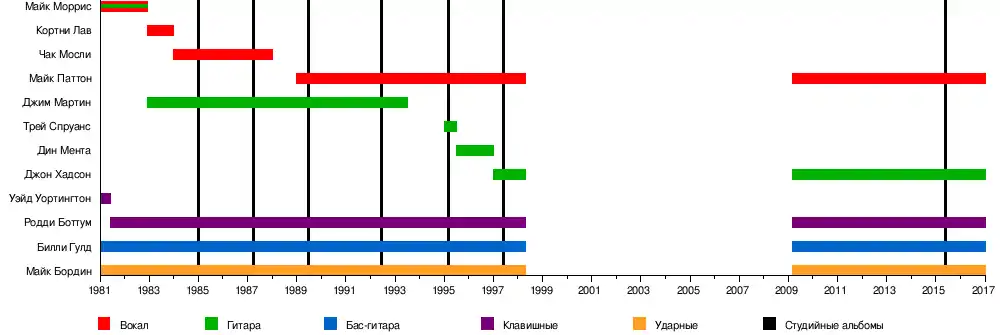 - Майк Паттон — вокал (1988—1998, 2009—наши дни)
