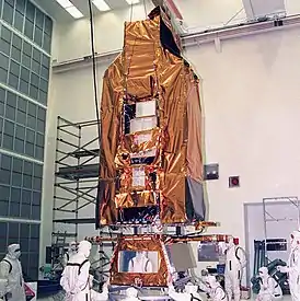 ![]() Предстартовая подготовка: FUSE в «чистой комнате», 3 мая 1999 года. | |