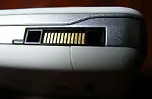 Разъём имеет 12 контактов для двунаправленной передачи электрических сигналов и два отверстия для фиксации коннектора в разъёме устройства. Размеры коннектора: 20х5 мм. На фронтальной стороне коннектора находится символ, который указывает на тип устройства и помогает определить правильность подключения аксессуара.