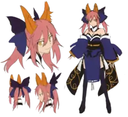 Кастер (яп. キャスター Кясута:) — Тамамо-но маэ. Антропоморфная кицунэ, отличающаяся преданностью своему мастеру и конфликтностью со всеми прочими персонажами. Вне зависимости от пола выбранного протагониста влюбляется в него и называет себя его «женой»[25]. Авторами Fate/Extra рассматривается в качестве наиболее сложного для прохождения игры персонажа[26].