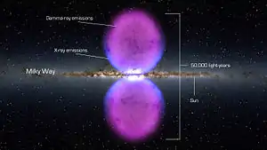 Одним из самых удивительных открытий, сделанных космическим телескопом, стало обнаружение гигантских образований размером до 50 тысяч световых лет, расположенных над и под центром нашей Галактики — Млечного Пути. Точная природа этих структур пока не известна, однако учёные полагают, что они возникли благодаря активности сверхмассивной чёрной дыры, находящейся в центре нашей Галактики. Предположительно, возраст пузырей составляет миллионы лет.[6].