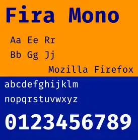 Вместе с гарнитурой Fira Sans был выпущен её моноширинный вариант, названный Fira Mono, доступный в обычном и жирном начертании.
