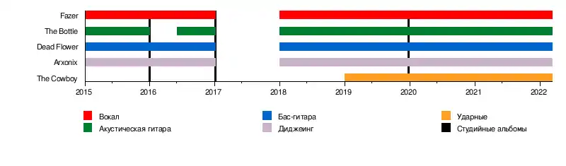 - Fazer — вокал, автор песен (2015—2017, 2018—н. в.)