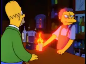 Гомер объяснил, что, однажды, Пэтти и Сельма пришли в гости к Симпсонам, чтобы показать свою коллекцию слайдов из их последнего летнего отпуска. В тот вечер Гомер обнаружил, что в их доме закончилось пиво и не придумал ничего лучшего, как смешать коктейль из разных напитков, имеющихся дома, включая детский сироп от кашля. Пэтти случайно подожгла коктейль, уронив туда пепел от сигареты. Так Гомер обнаружил, что огонь делает его напиток гораздо вкуснее.
