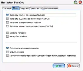 ![]() Окно настроек Flashgot | |
