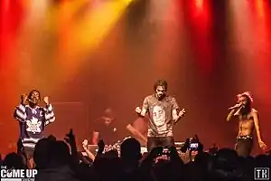 ![]() Flatbush ZOMBiES в 2014 году: Мичи Дарко, Эрик Арк Элиот и Зомби Джус | |
