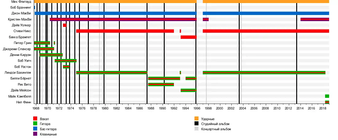- Кристин МакВи (Christine McVie) — клавишные, вокал (1970—1995, 1997—1998, 2014—наши дни)