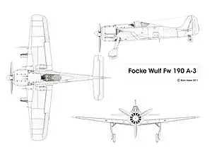 - FW-190 A-3/U1 — опытный образец с удлинённой на 15 см моторамой для смещения центра тяжести. Прообраз Fw 190 A-5.