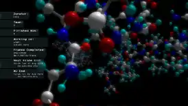 ![]() Скриншот клиента Folding@home для PlayStation 3, показывающий 3D модель моделируемого белка | |