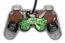 Геймпад внутри; в ручках видны моторы, обеспечивающие обратную связь