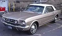Первый Mustang покинул конвейер утром 9 марта 1964 года, а к концу этого же года было продано 263 434 машины[6][7]. В качестве основы для дизайна Mustang был использован стилистический «ключ» люксового купе Continental Mark II середины пятидесятых годов — с характерными пропорциями с длинным капотом и коротким багажником и пластикой боковины кузова с изломом над аркой заднего колеса.