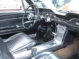 В 1965 году в стандартный интерьер Mustang введены раздельные регулируемые сиденья водителя и пассажира, радиоприёмник с амплитудной модуляцией (AM), напольный рычаг переключения передач. Также опционально были доступны солнцезащитные козырьки, механическое дистанционное управление зеркалом, напольная консоль и нераздельное переднее сиденье. Также одним из вариантов интерьера был Rally-Pack: часы и тахометр с креплением на рулевой колонке. Он был доступен за $69,30 (с установкой у дилеров — $75,95).